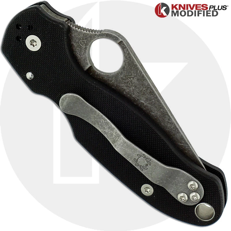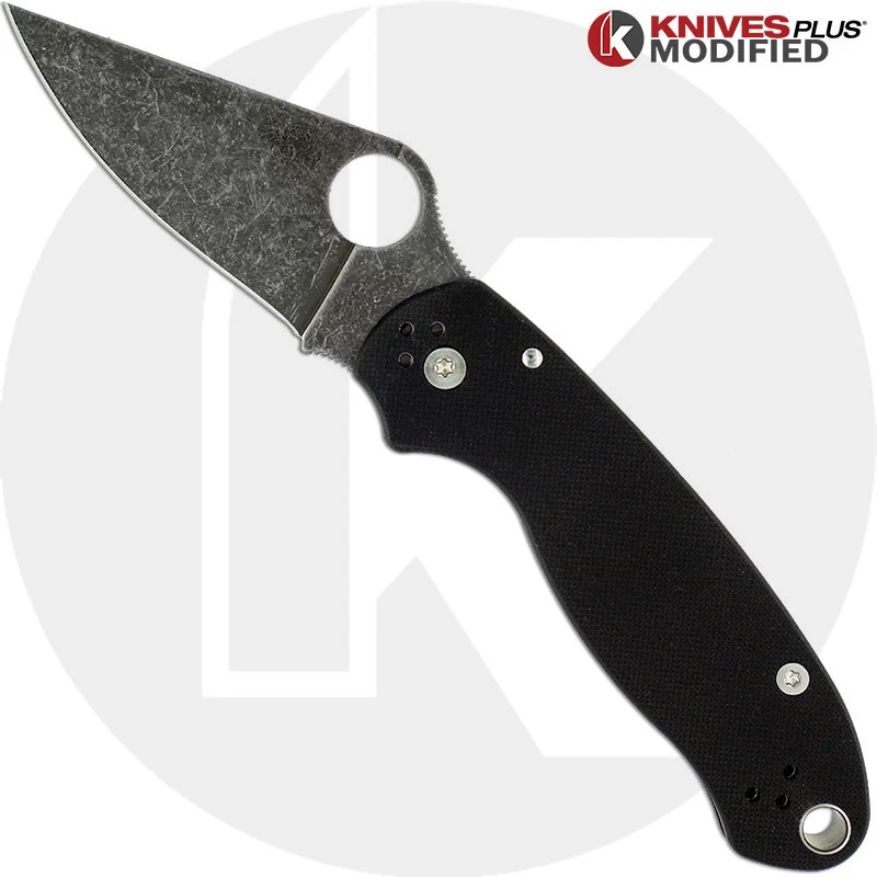 MODIFIED Spyderco Para 3 Knife ACID WASH Blade BLACK G10 – KP-PARA3-2