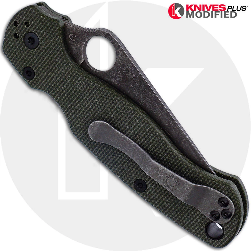 MODIFIED Spyderco Para Military 2 Knife with Acid Stonewash Blade + KP OD Green Micarta Scales + KP All Black Hardware – KP-C81-2