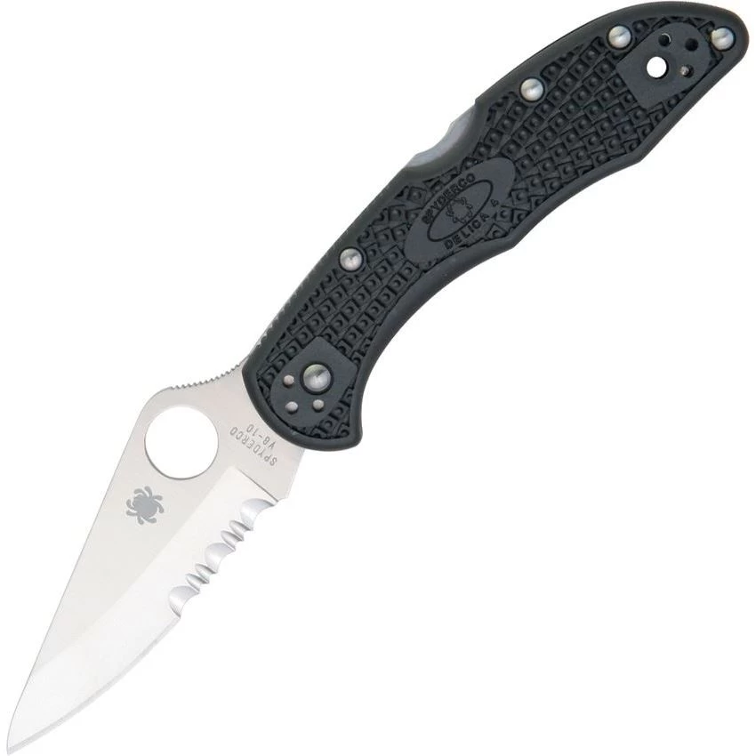 - Spyderco 11PSBK – Delica 4 Part Serrated Blade Lockback Folding Pocket Knife with Black FRN Handles