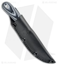 - Black and gray G-10 handle scales that are pinned to a full tang.