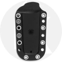 The illustrated Spyderco Knife is the Spyderco Enuff Knife that features a 2.75″ clip point fixed blade made of VG10 stainless steel, .157″ thick. The blade of this Spyderco Knife has a full flat grind, a notched thumb rest and a lanyard hole. The Enuff Knife has full tang construction for strength, Bi-Directional Textured black FRN (fiber reinforced nylon) scales for secure grip and a lanyard hole. A molded polymer sheath is included with this Spyderco Knife. The Spyderco Enuff Knife with clip point blade has an overall length of 6.75″, and it weighs 3.8 ounces. Made in Japan.